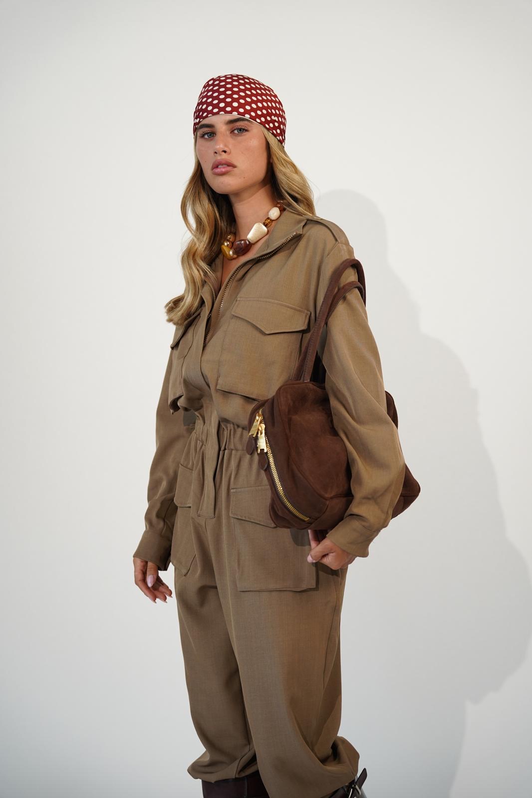 אוברול בגזרת אובר סייז עם הדגשת המותן.
