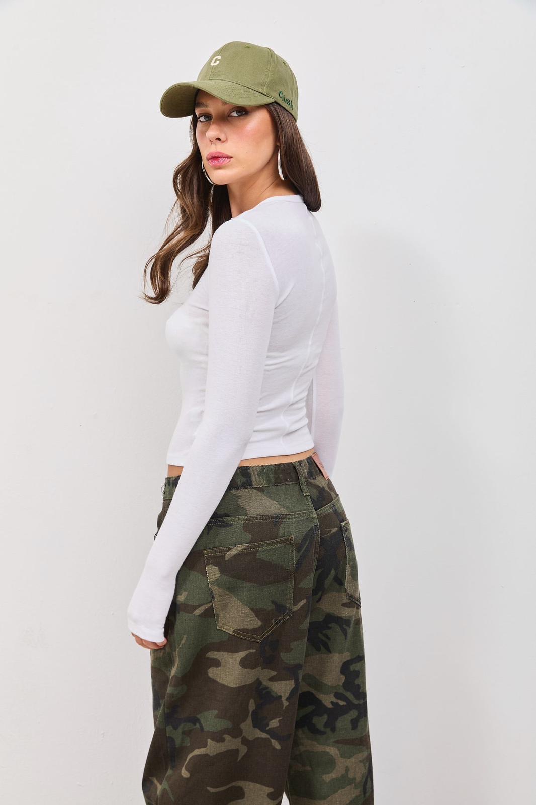 הג’ינס מגיע במידה אחת, אבל יש לו 2 קרסים במותן שאיתם ניתן לשלוט במידה