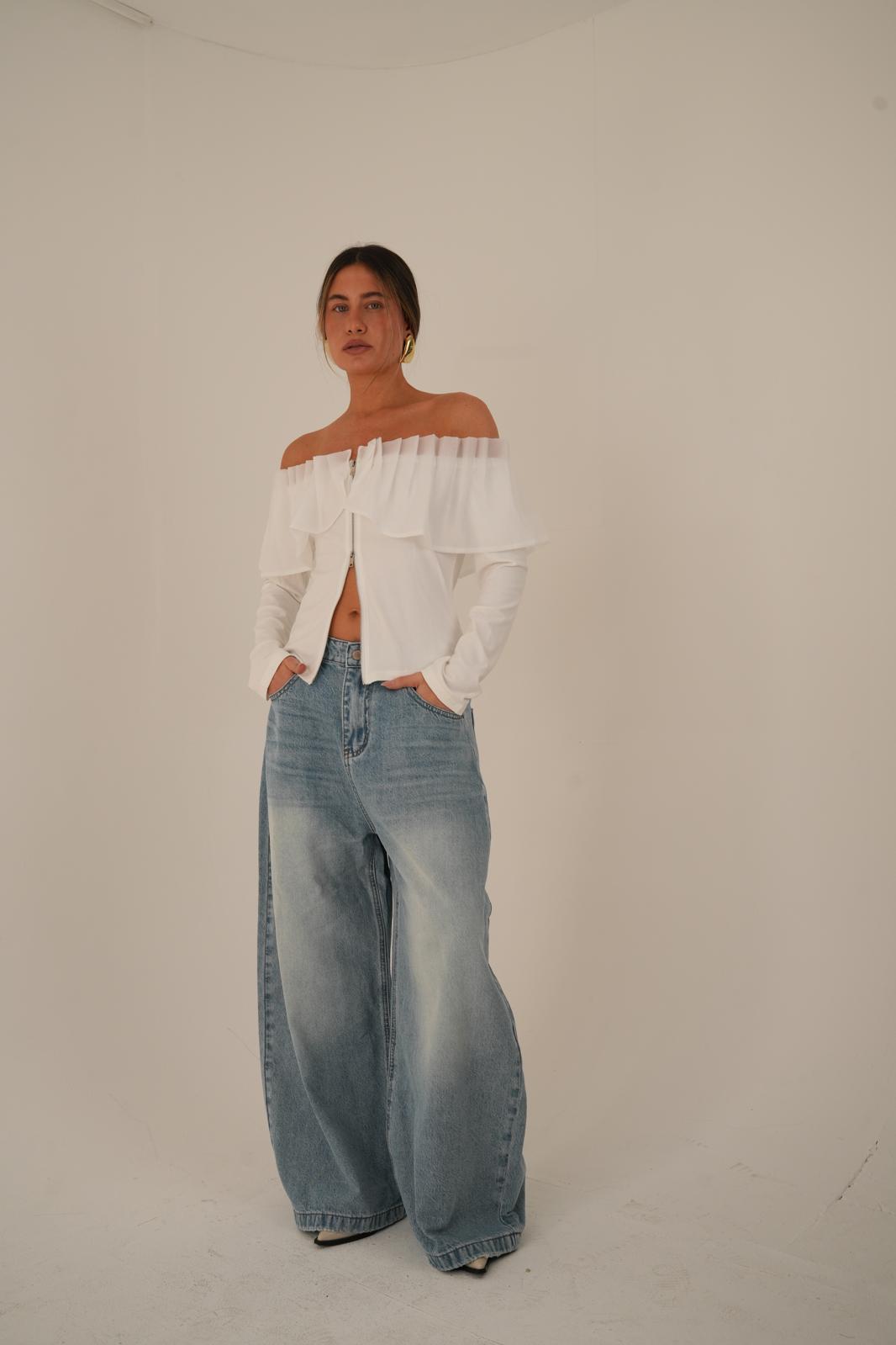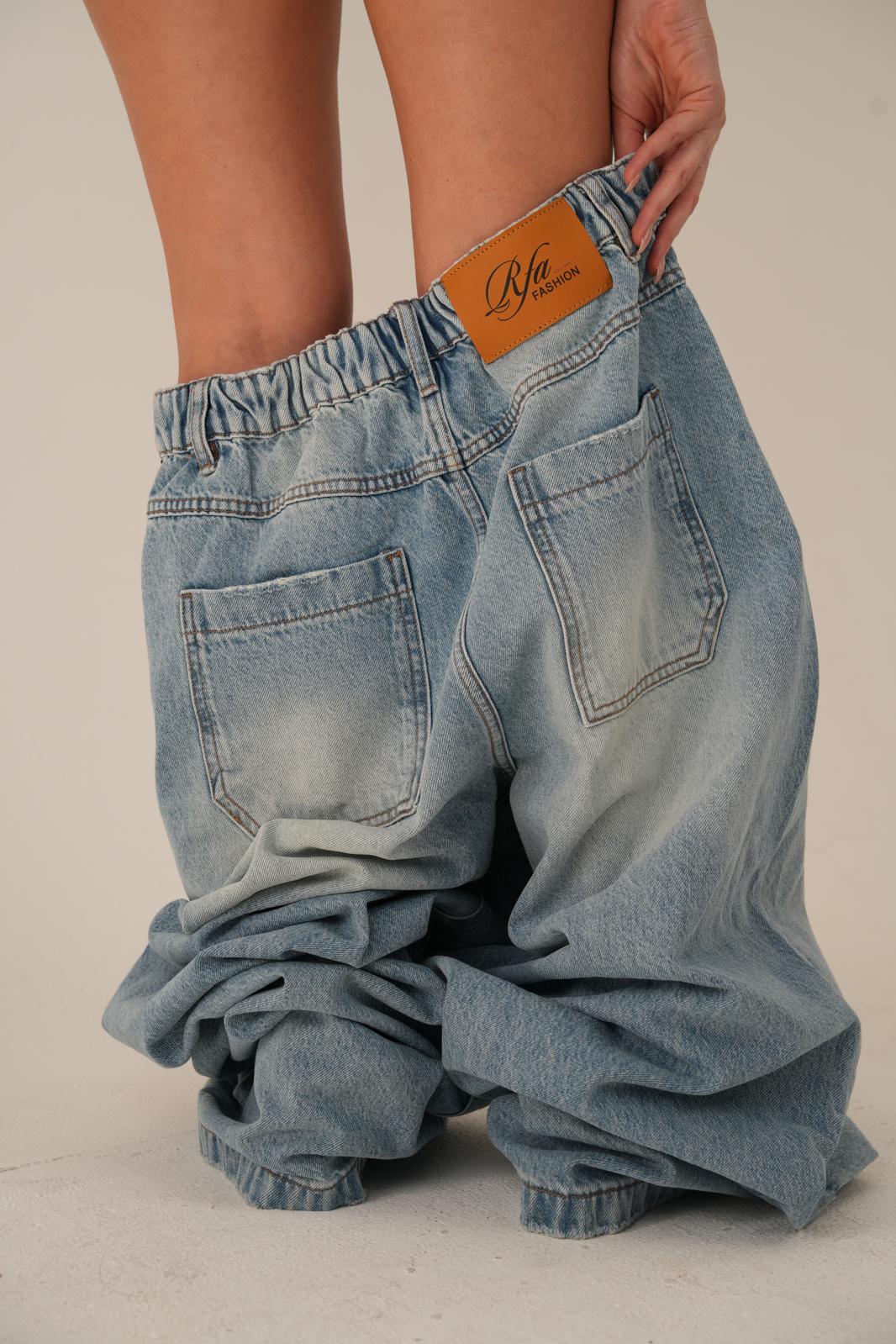 הג'ינס עם גומי בחלקו האחורי במותן,