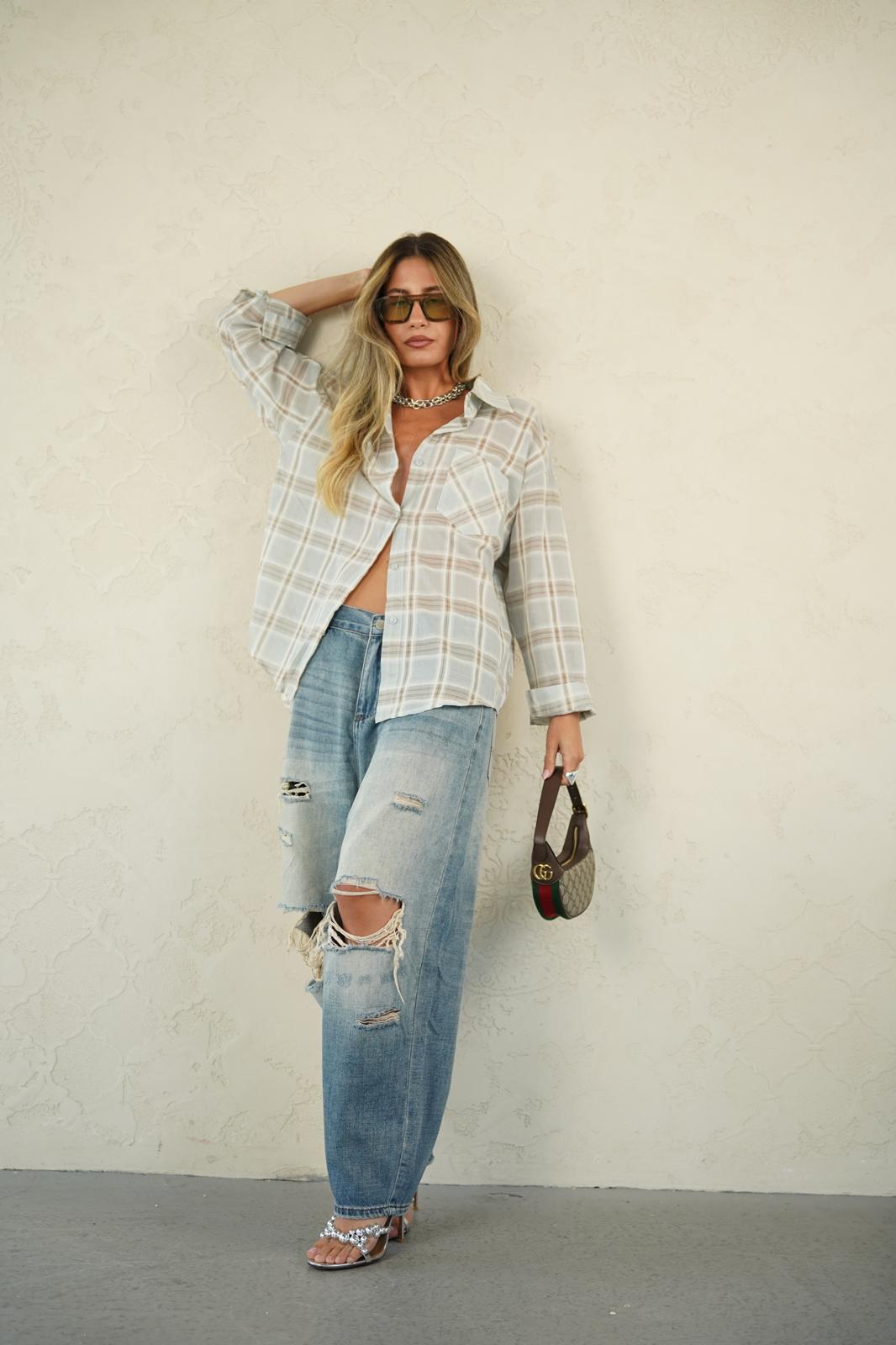 חולצת משבצות מכופתרת