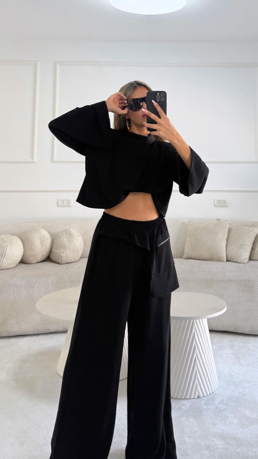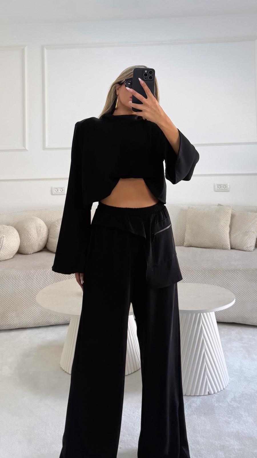 חליפת קז'ואל המורכבת מחולצה באורך קרופ