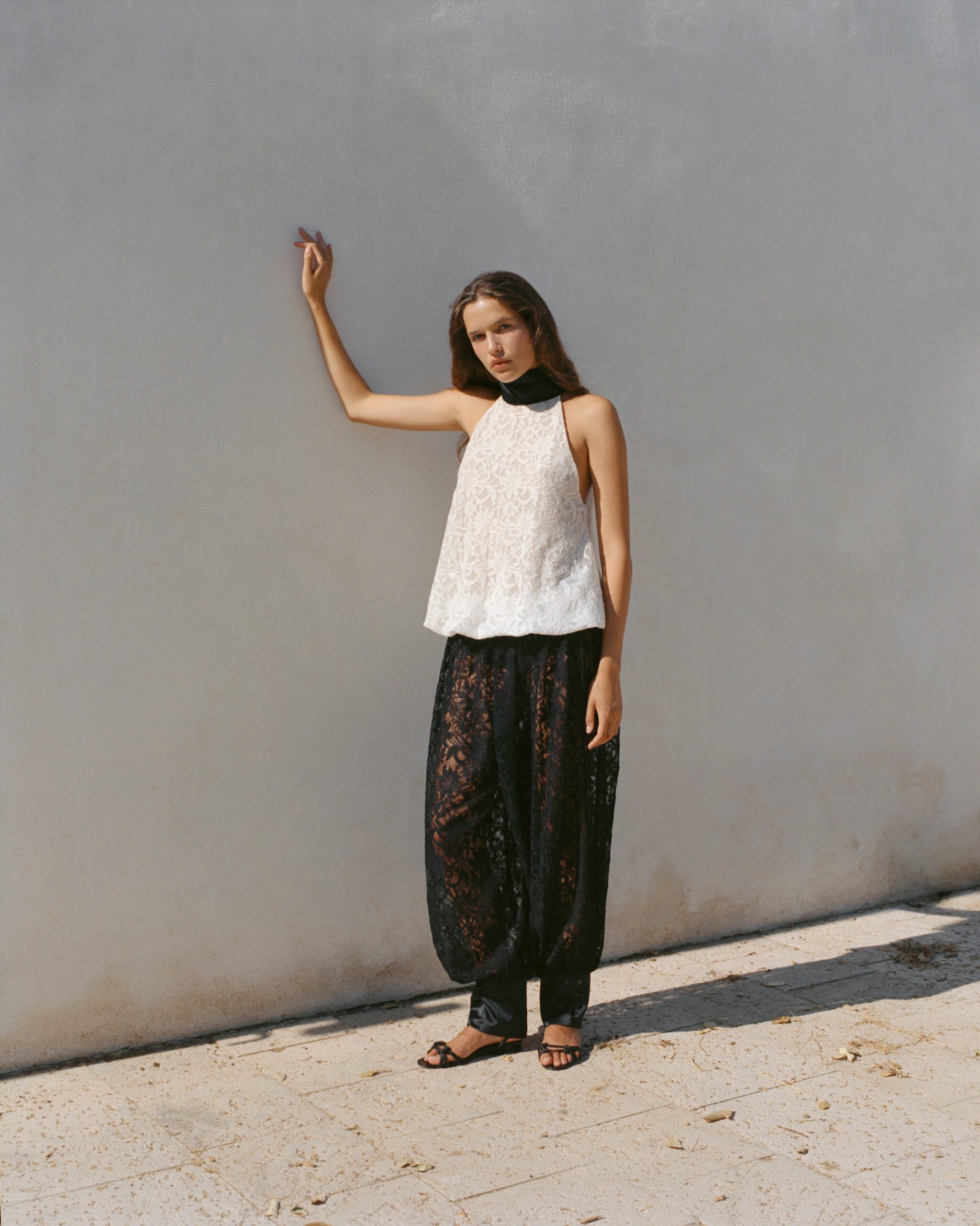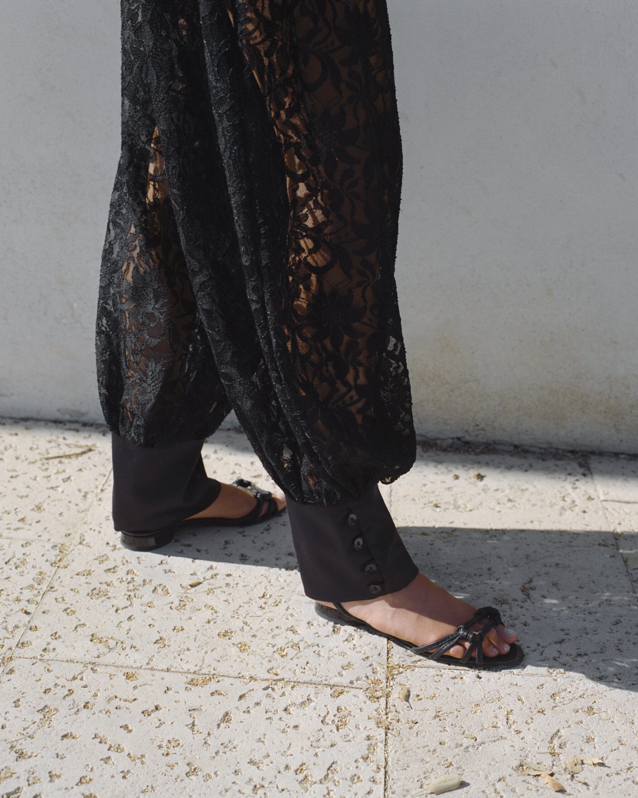 מכנסי תחרה בגזרה נינוחה וקלילה.