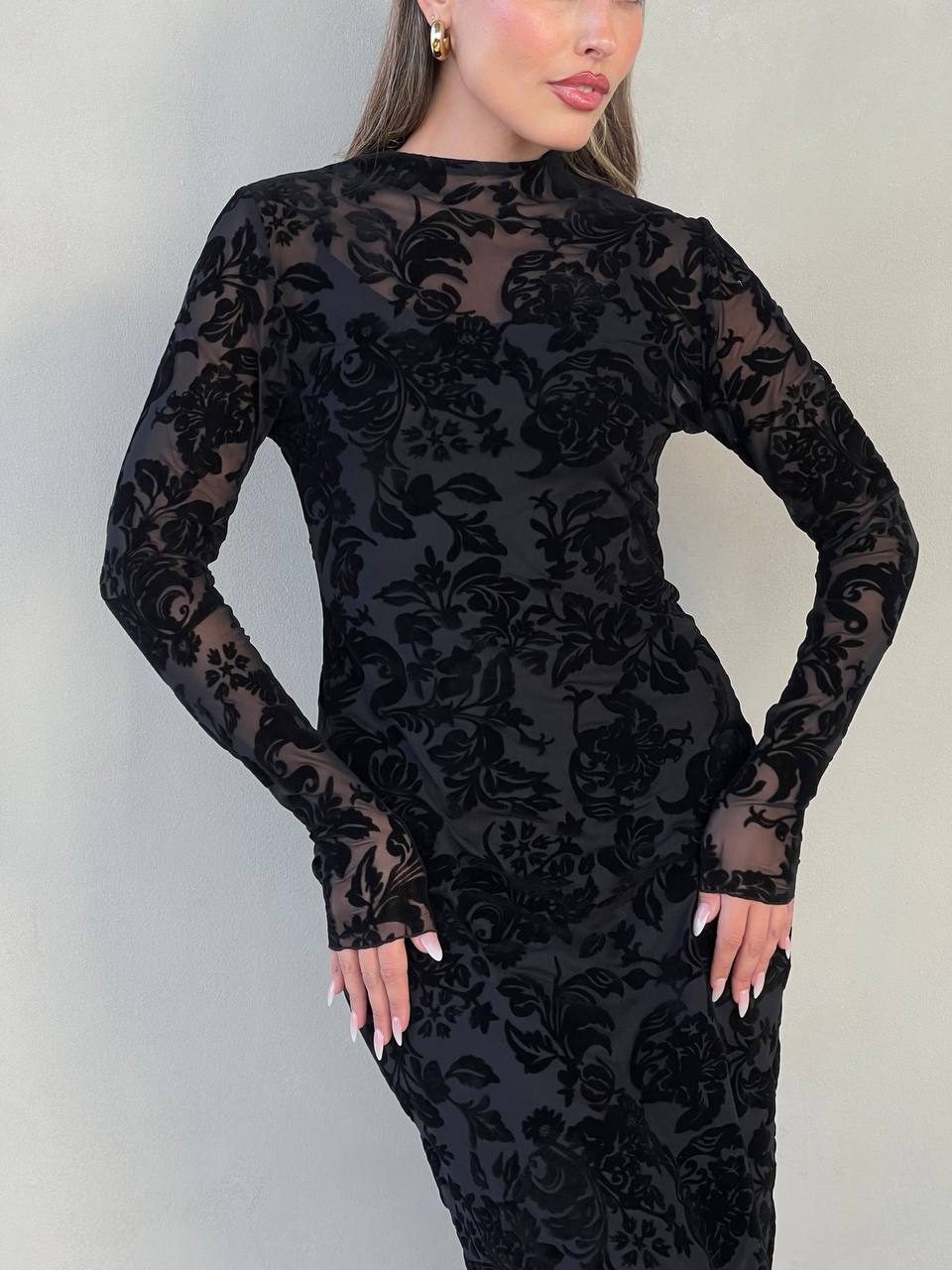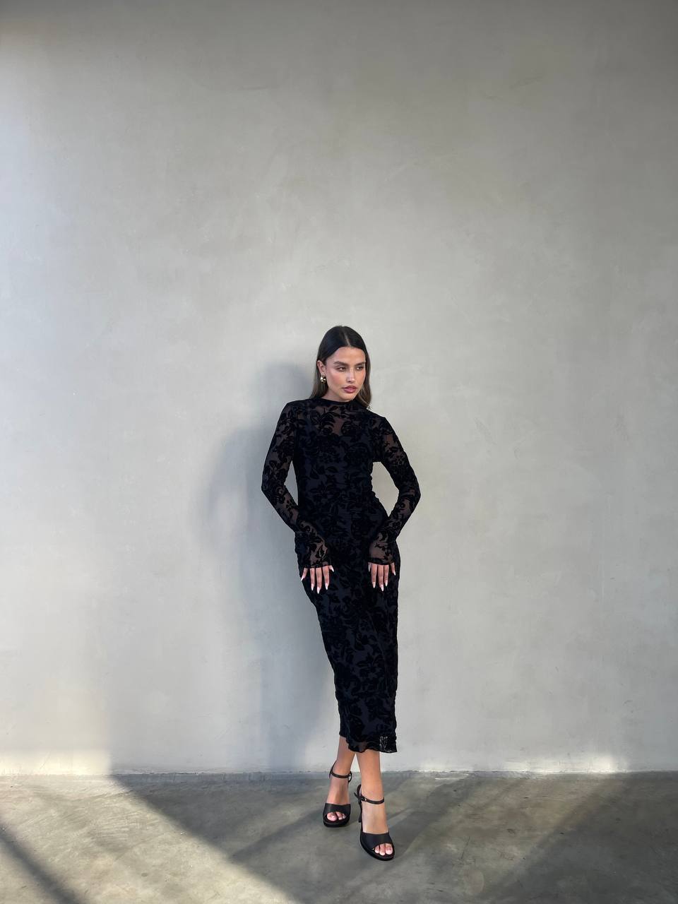 השמלה שקופה ומגיעה עם שמלת בסיס נפרדת שחורה ללבישה מתחת.