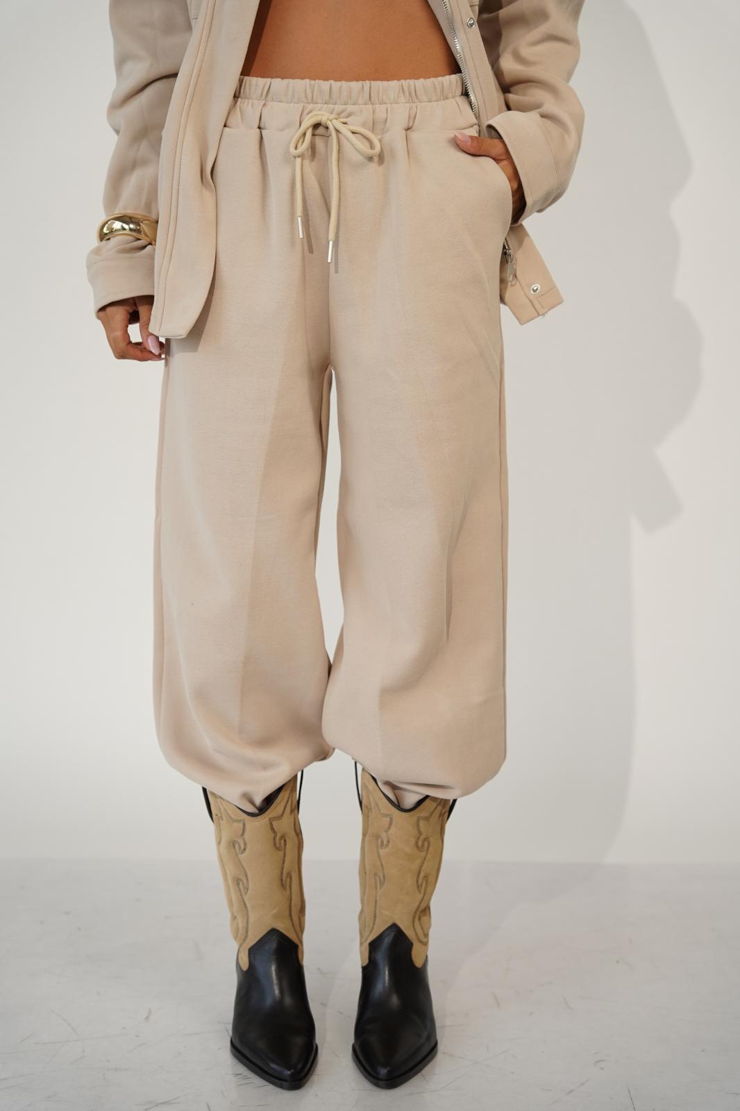 המכנס בגזרה ישרה, עם גומי ושרוך במותן.