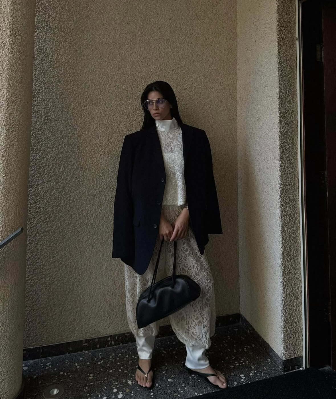 רומנטי ופרט פתוח עדין בגב, נסגר בכפתורי פנינה.