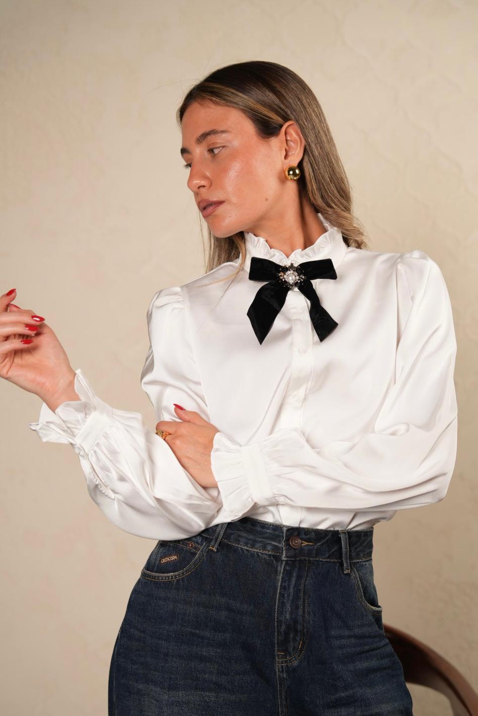 החולצה מסאטן נעים וחגיגי.