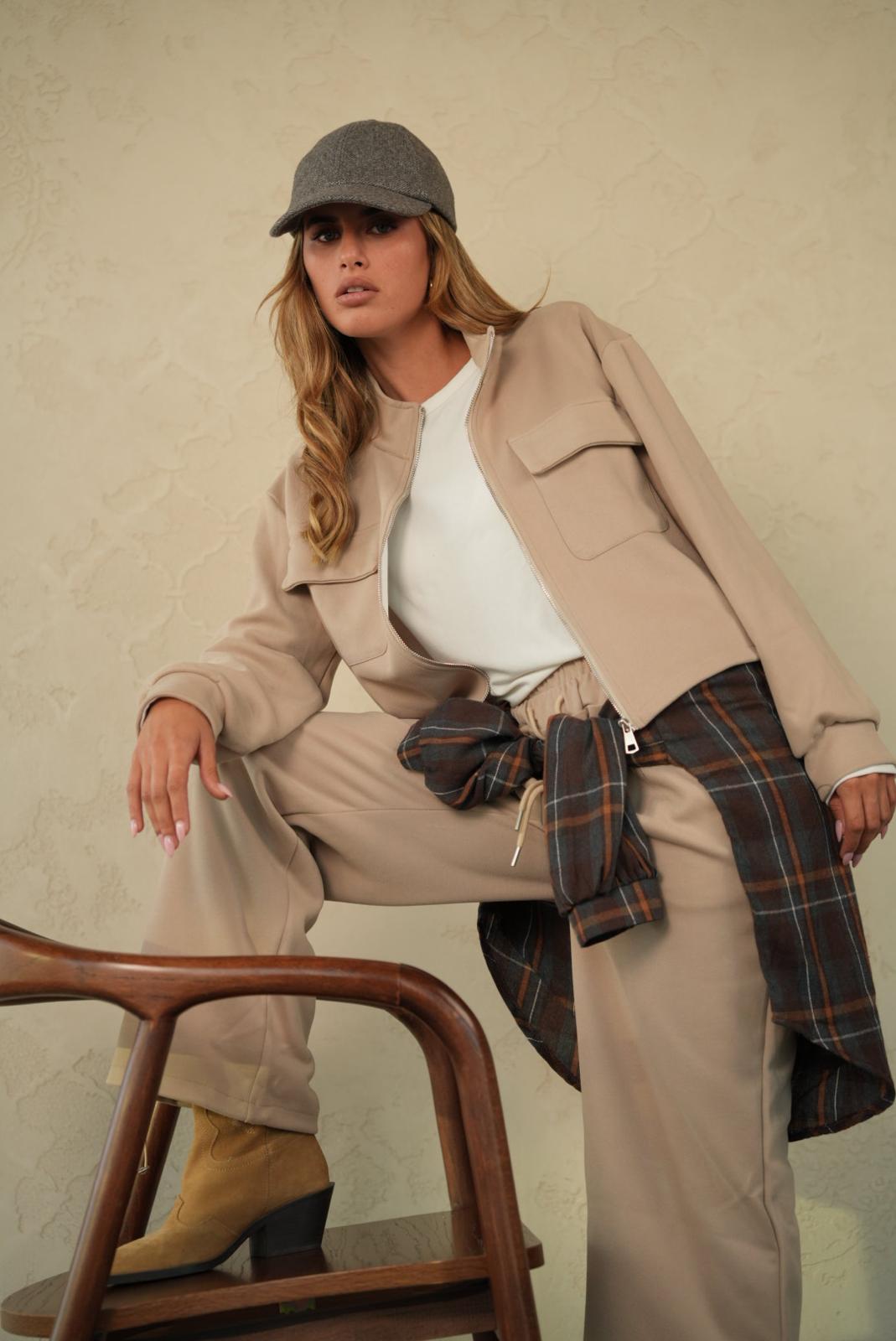 חליפת מכנסיים העשויה מבד פוטר איכותי ומפנק למראה נוח ובסטייל.