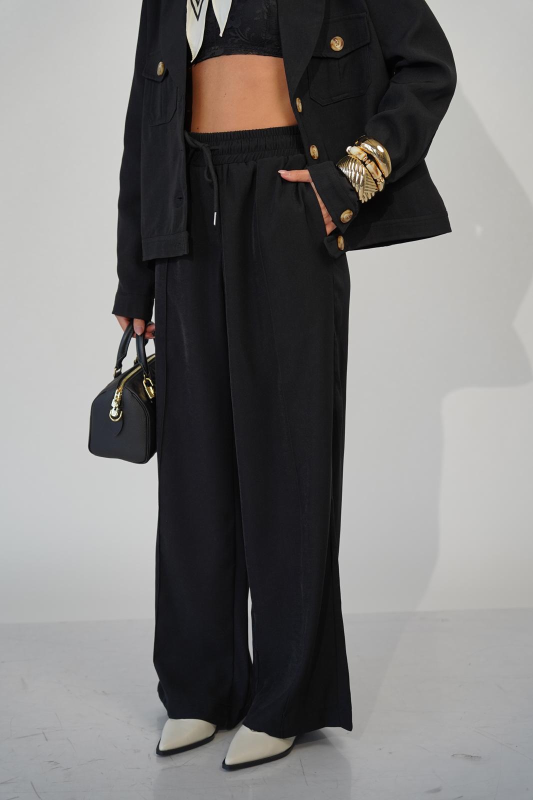 המכנס בגזרה ישרה, עם גומי ושרוך במותן.