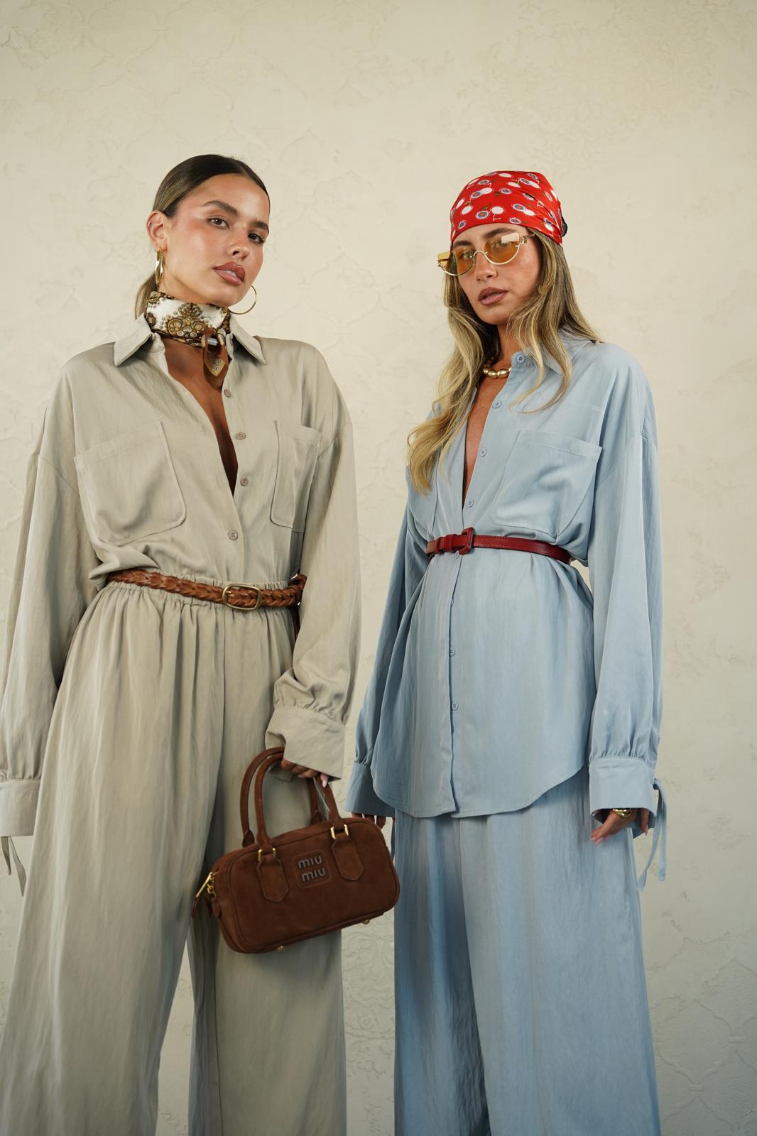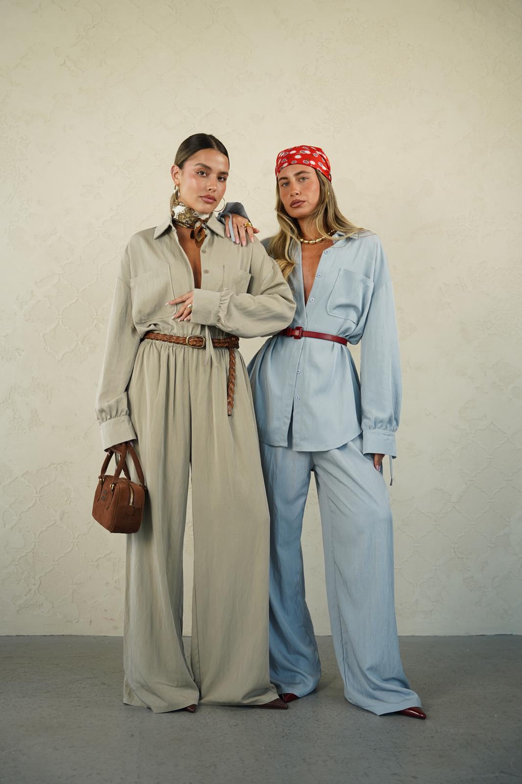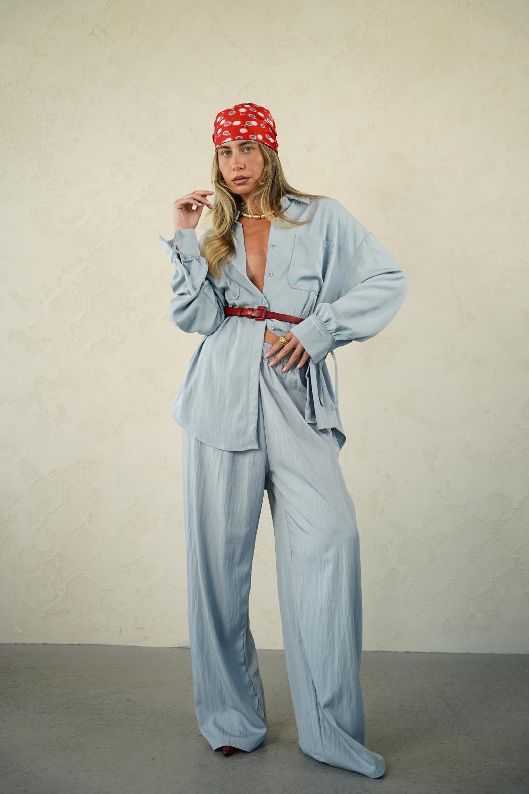 חליפת מכנסיים מבד נשפך עשיר ונעים,