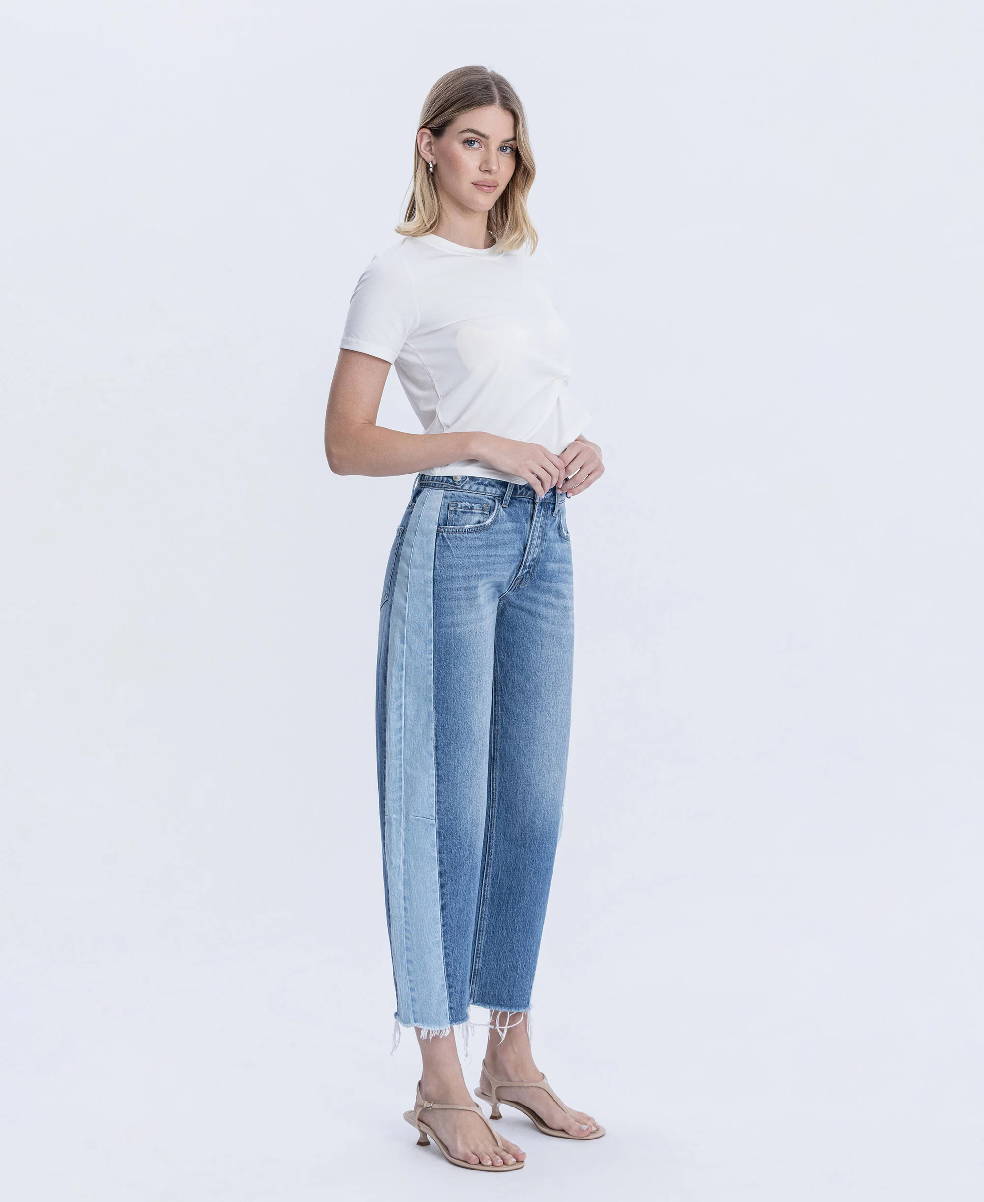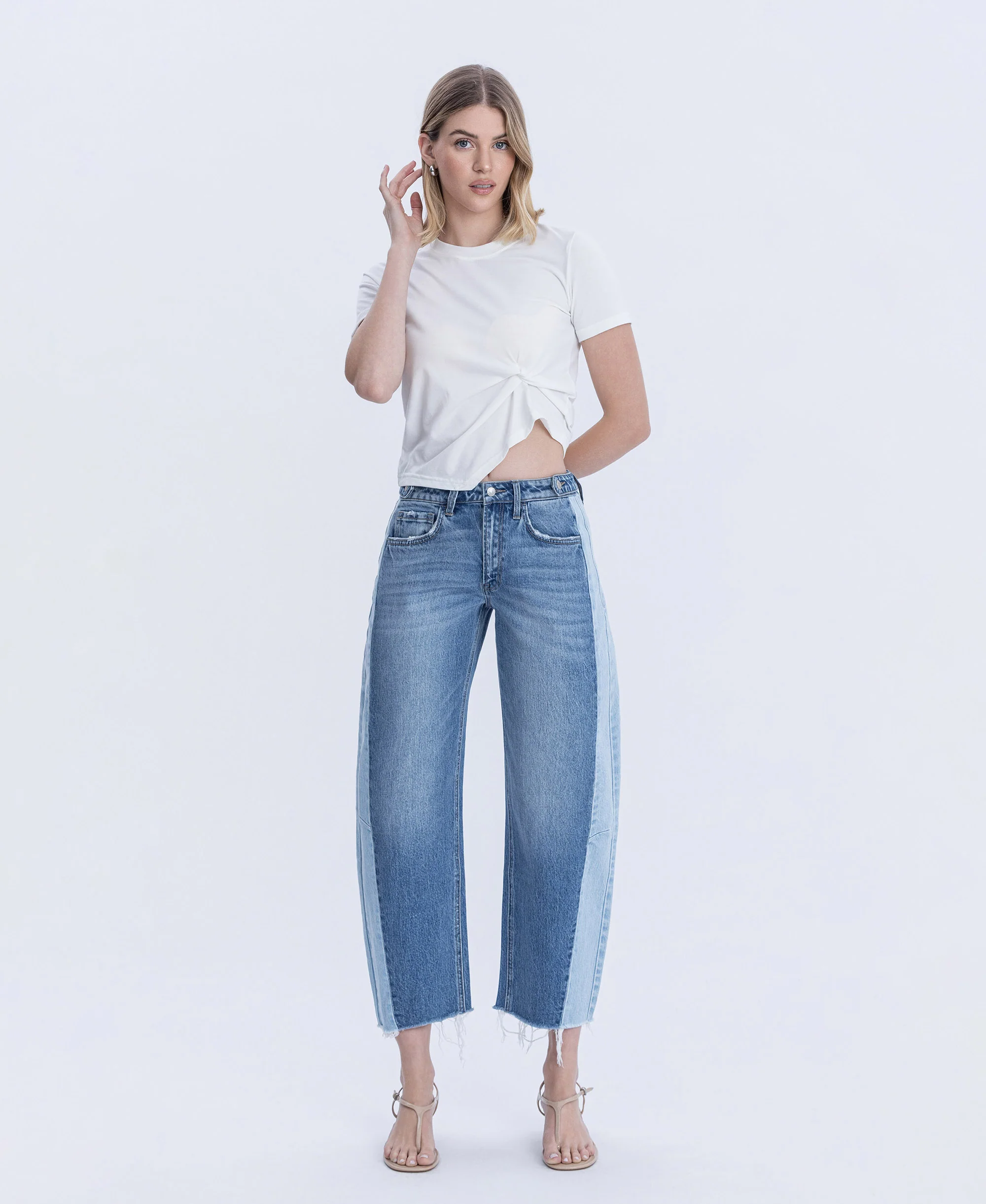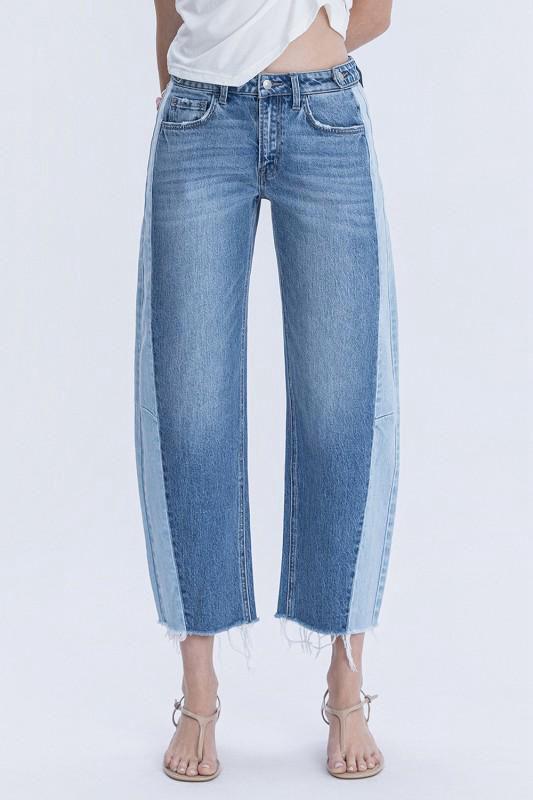 מכנס ג'ינס בגזרה ישרה, אך עם בלוניות עדינה