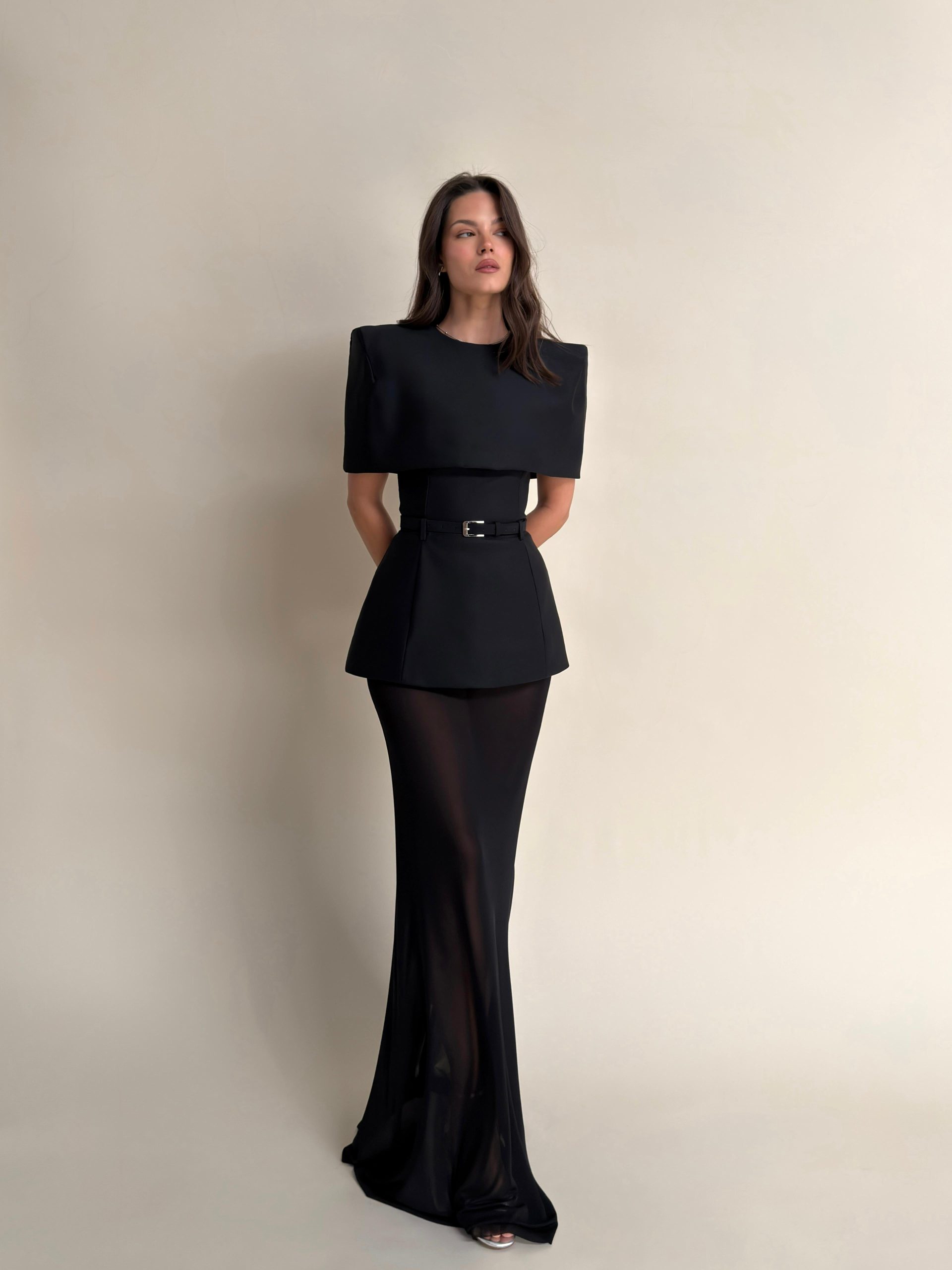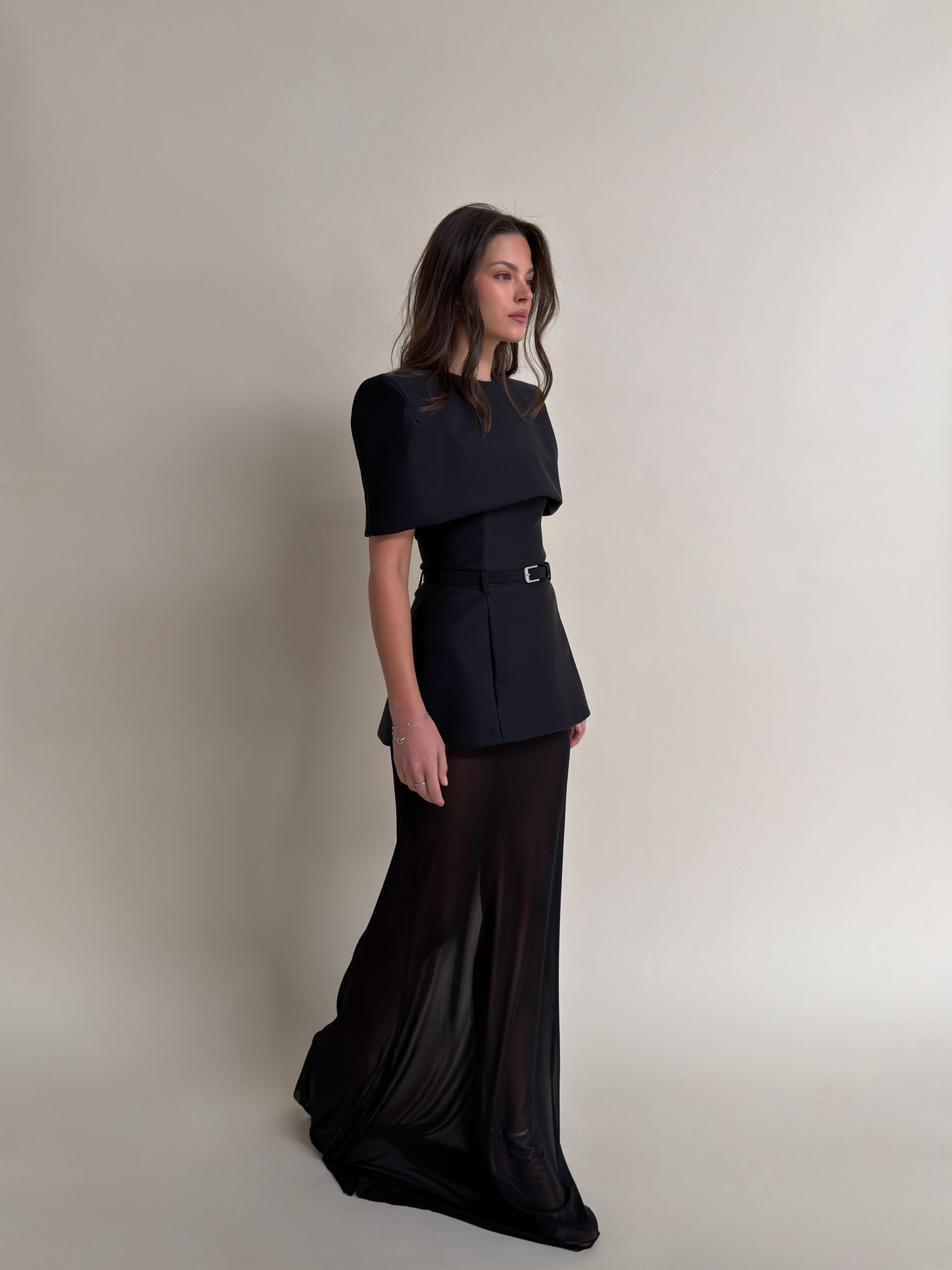 וחצאית נשפכת מבד שיפון איכותי עם נפילה מחמיאה ויפה,