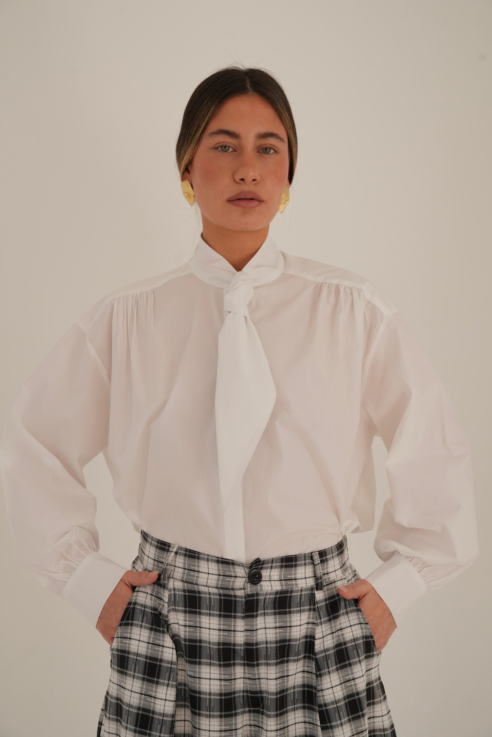 משולבת עניבה המחוברת לצווארון ומעשירה אותה.