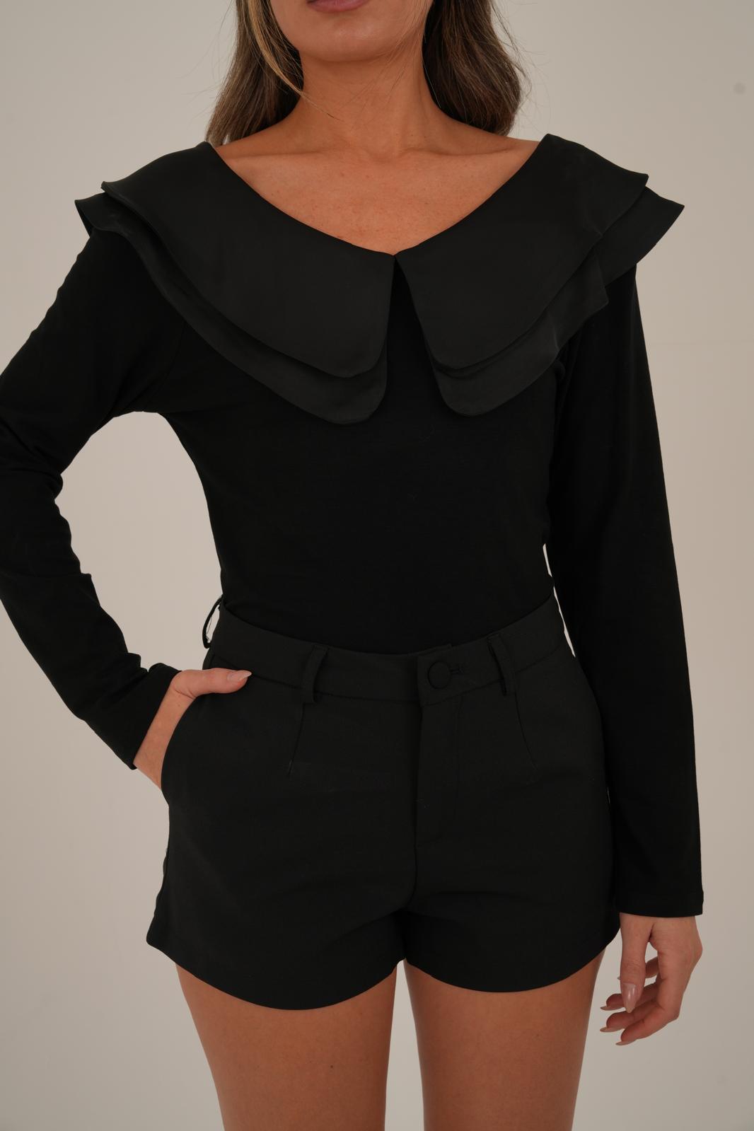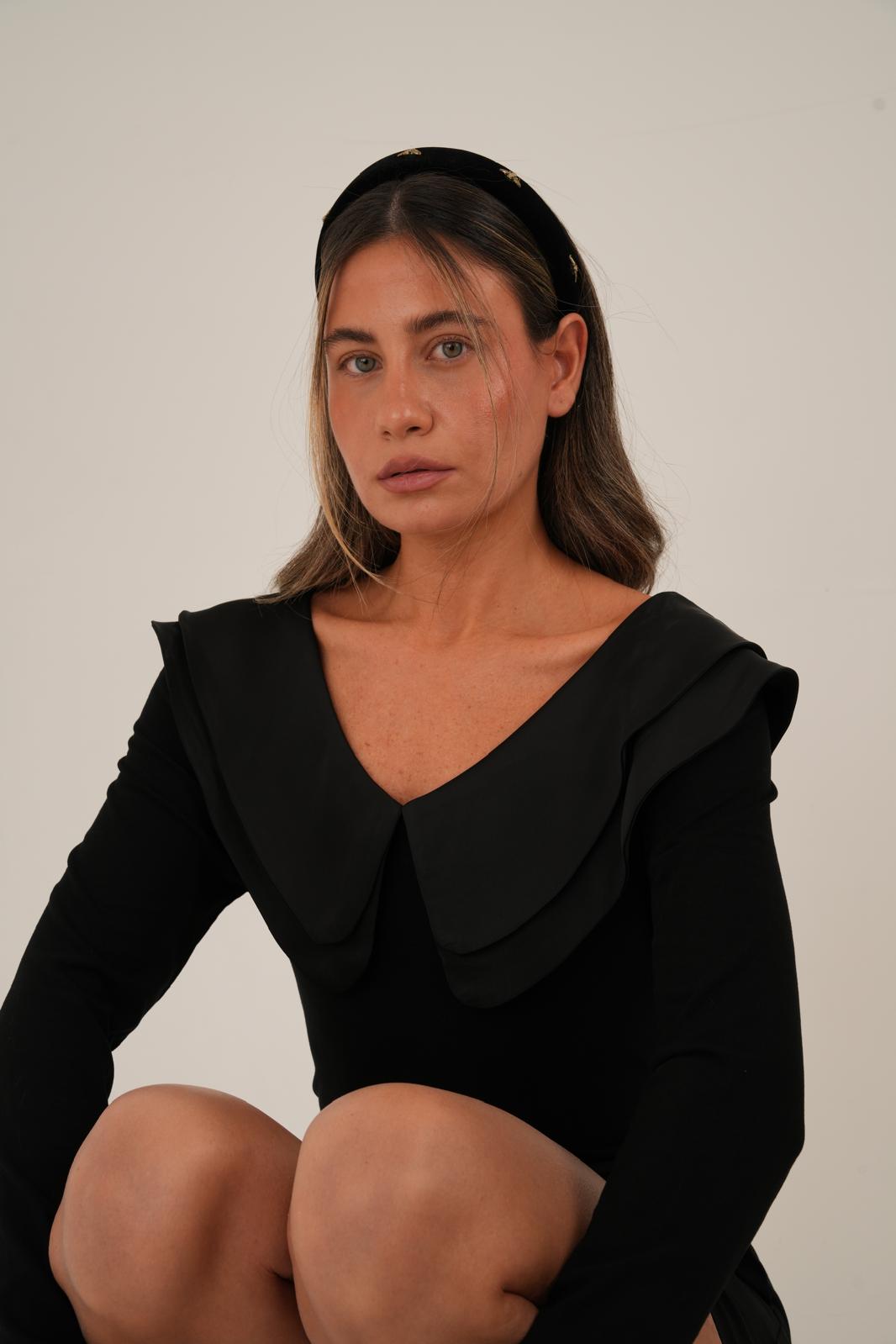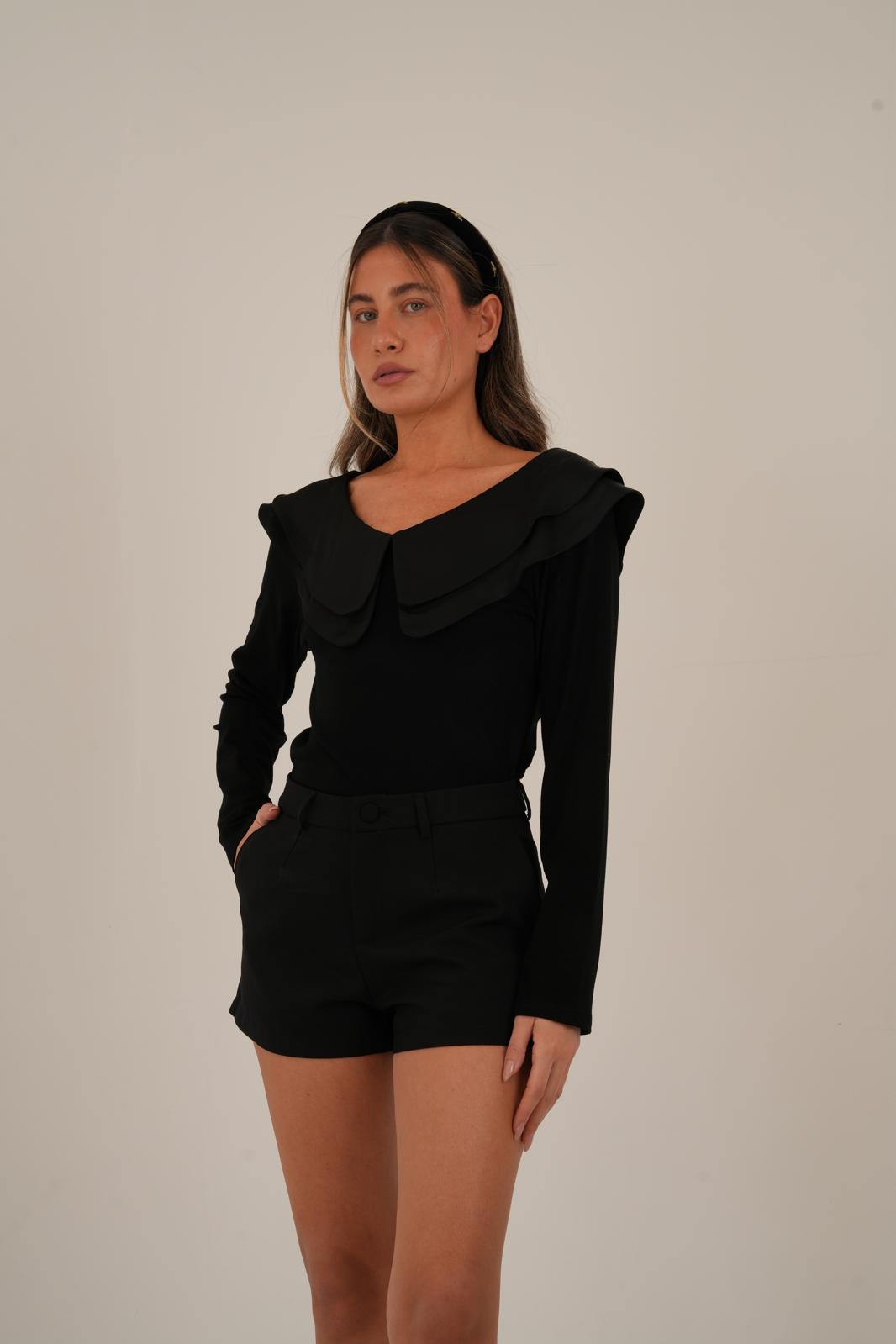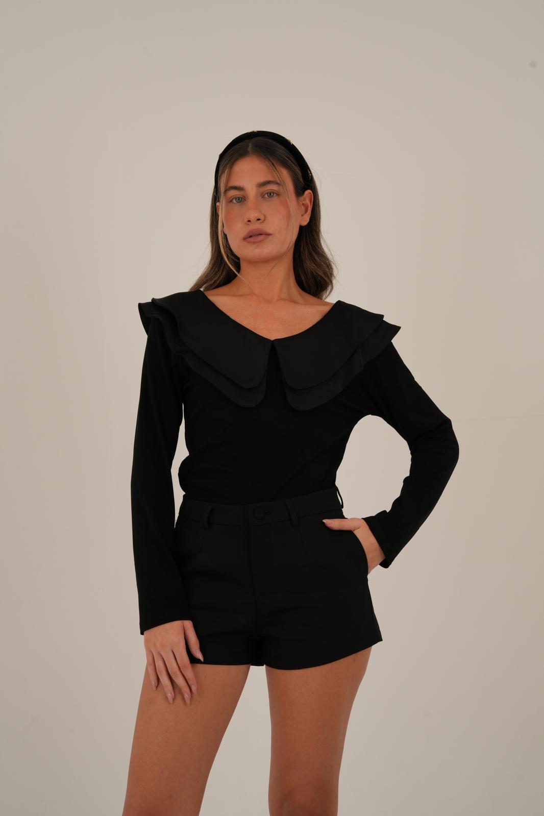 עם מפתח רחב וצווארון כותנה פומפוזי.